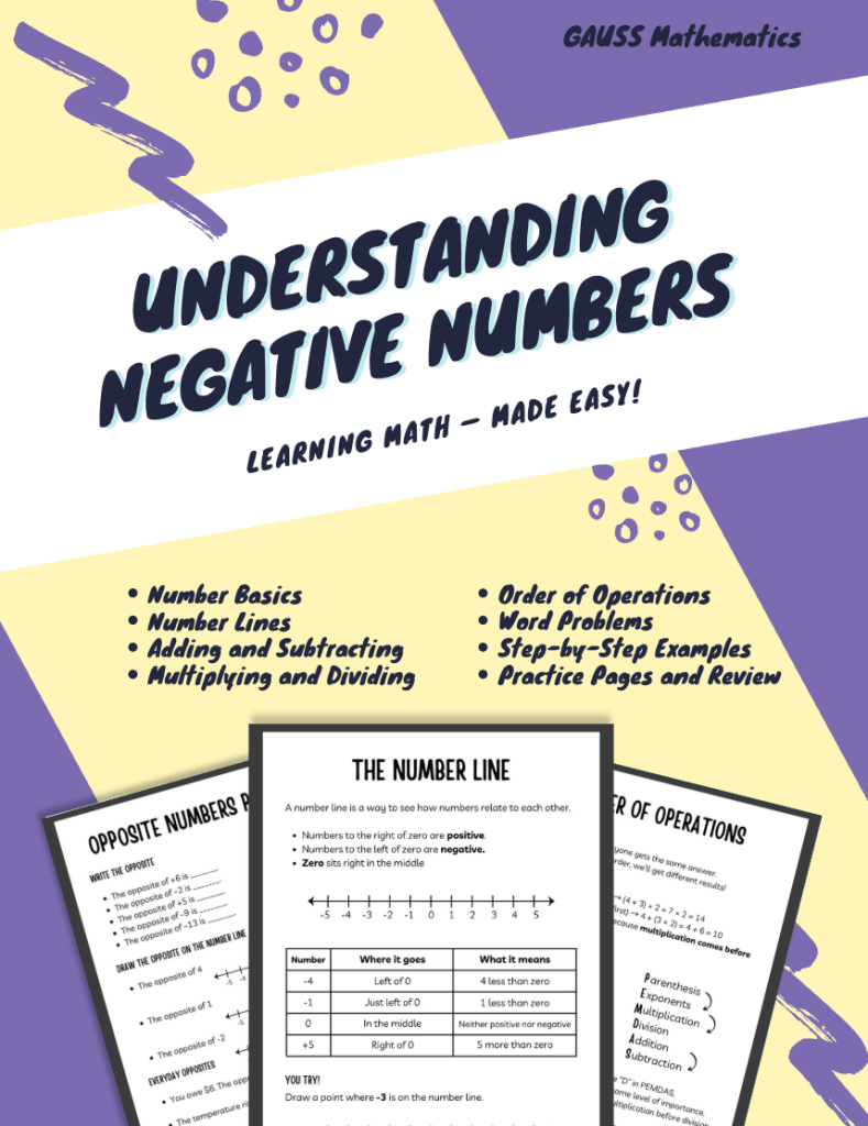 Understanding Negative Numbers is a visual, engaging workbook designed for special needs students, visual learners, and anyone who struggles with traditional math instruction. Through number lines, real-life examples, and step-by-step guided practice, students build confidence with positive and negative numbers the friendly way!